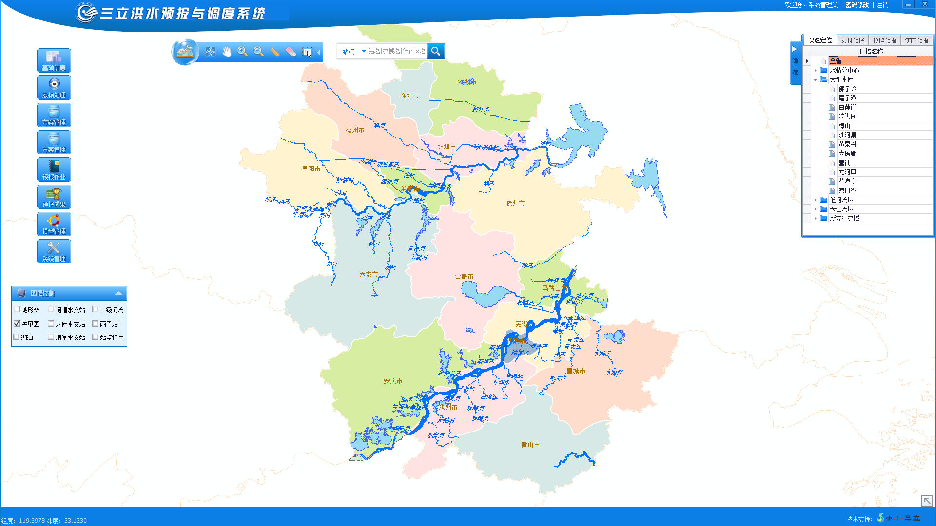 洪水預(yù)報是防洪減災(zāi)的重要非工程措施之一,洪水預(yù)報系統(tǒng)軟件是進行河道及水庫入庫斷面流量和水位預(yù)報方案編制和作業(yè)預(yù)報的重要技術(shù)支撐。中水三立始終秉承技術(shù)優(yōu)勢與服務(wù)口碑贏得市場與用戶的肯定。目前,系統(tǒng)已成功運用至安徽中小河流洪水預(yù)報、山東省中小河流預(yù)報預(yù)警、池州城區(qū)防汛排澇、龍河口、花涼亭、梅山、響洪甸等水庫洪水預(yù)報項目。
