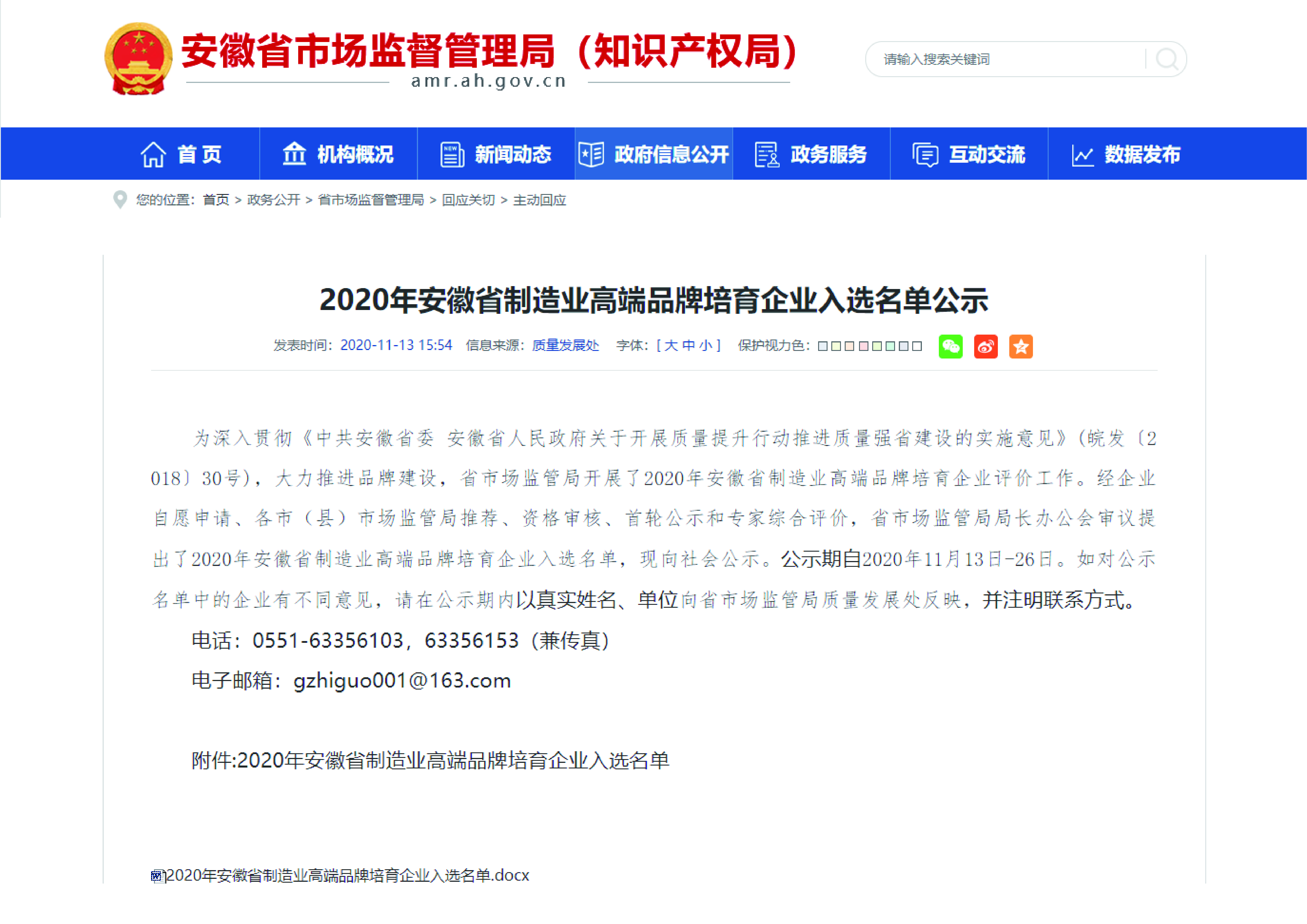 為深入貫徹《中共安徽省委 安徽省人民政府關(guān)于開(kāi)展質(zhì)量提升行動(dòng)推進(jìn)質(zhì)量強(qiáng)省建設(shè)的實(shí)施意見(jiàn)》,大力推進(jìn)品牌建設(shè),增強(qiáng)安徽產(chǎn)品核心競(jìng)爭(zhēng)力和品牌影響力,省市場(chǎng)監(jiān)管局開(kāi)展了制造業(yè)高端品牌培育企業(yè)評(píng)選工作,這也是安徽省首次開(kāi)展該項(xiàng)評(píng)選。