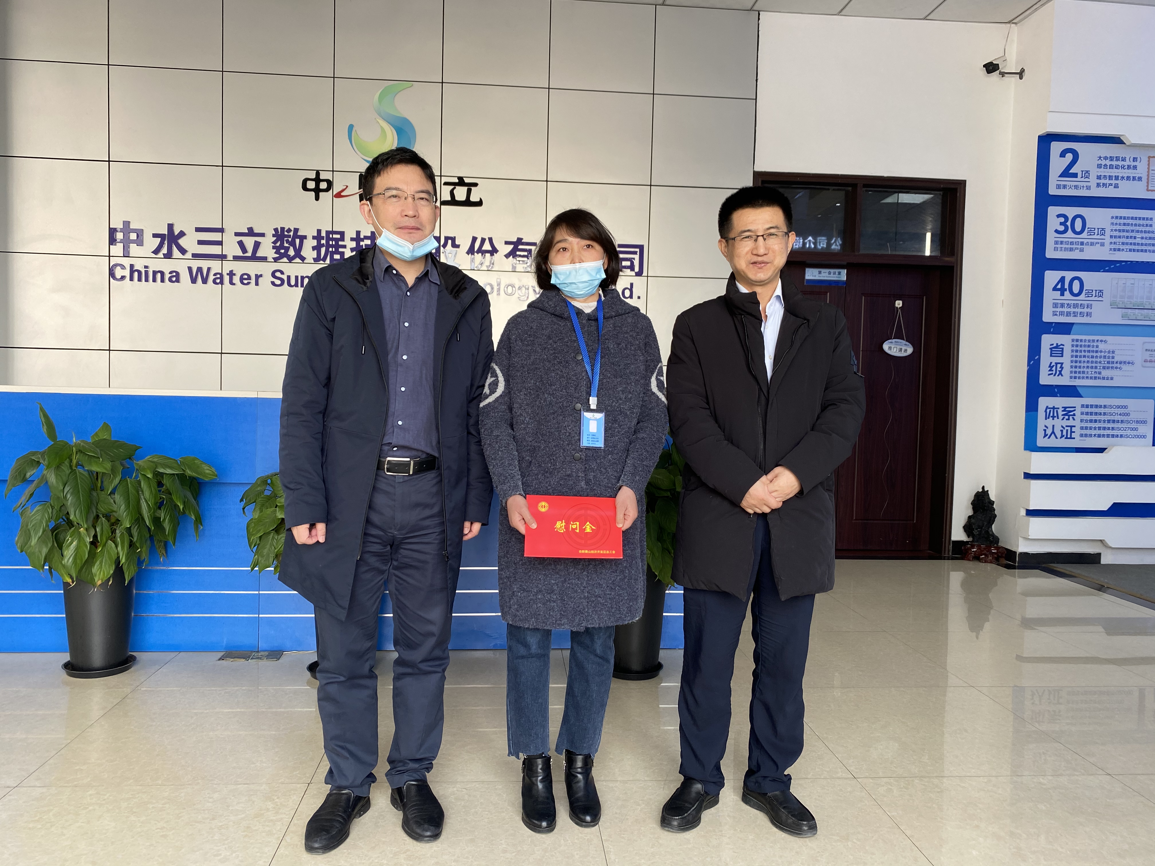 2021年2月3日上午,合肥市蜀山經(jīng)濟開發(fā)區(qū)黨工委書記、管委會主任韓東及蜀山經(jīng)濟開發(fā)區(qū)工會委員會副主席王圣和,代表蜀山區(qū)總工會為我司困難職工送來雙節(jié)問候和新春祝福,中水三立李兵總裁表示熱烈歡迎并與韓書記開展交流。