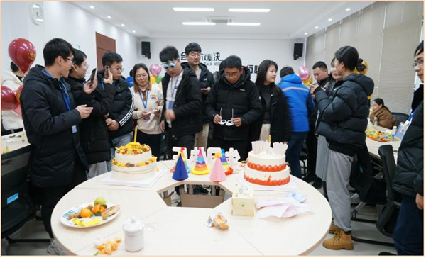 在元旦假期前一天,我們迎來了公司2023年度第三場生日會暨入職周年紀(jì)念,目之所及是一張張可愛的笑臉以及在人力資源部小伙伴們精心布置琳瑯滿目的生日裝飾和各式各樣的零食水果。