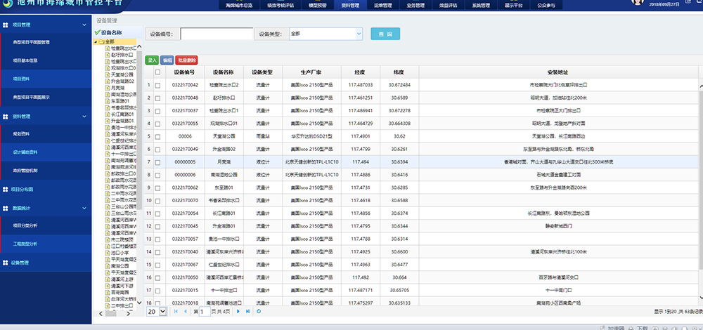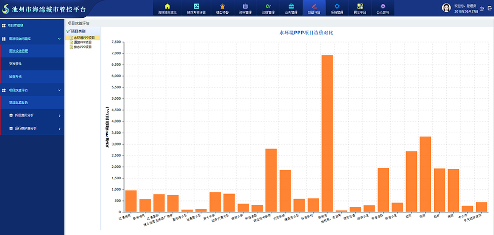 通過該功能實(shí)現(xiàn)對(duì)海綿城市建設(shè)的各類項(xiàng)目資產(chǎn)進(jìn)行信息化管理,規(guī)范管理內(nèi)容與管理流程,評(píng)估資產(chǎn)建設(shè)效益與成本費(fèi)用支出,為后續(xù)設(shè)計(jì)建設(shè)、設(shè)備選型提供參考評(píng)估依據(jù)。